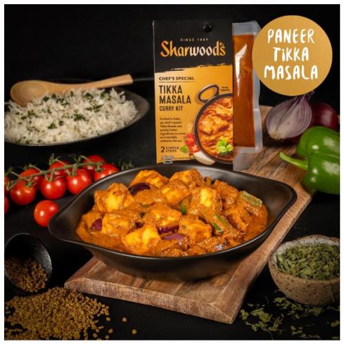 Sharwood's 2 Step Curry Kit - Tikka Masala is a convenient kit that allows you to create a delicious Tikka Masala curry in just two simple steps. It includes a Tikka Masala paste and a Tikka Masala sauce, designed to deliver an authentic Indian flavor using quality ingredients. The kit is quick to prepare, taking only about 10 minutes, and is suitable for various proteins like chicken, paneer, or roasted squash.