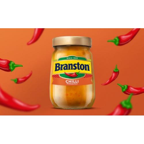 Branston Chilli Piccalilli is a tangy and crunchy condiment made with a blend of pickled vegetables and a mild chilli kick. It's a variation of the classic Branston Piccalilli, offering a mustardy flavor with a touch of spice. This versatile relish is ideal for adding a zesty flavor to sandwiches, burgers, cheeseboards, and other savory dishes