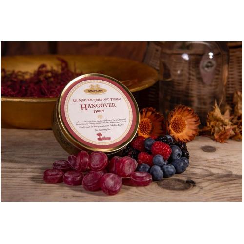 Simpkins Hangover Drops feature a unique blend of natural flavors including ginger and citrus. A soothing lozenge formulated to ease queasiness and help refresh and rehydrate the senses.