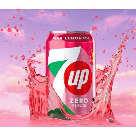 7UP Zero Sugar Pink Lemonade is a carbonated soft drink that combines the refreshing taste of 7UP with a burst of pink lemonade flavor, specifically lemon, lime, and raspberry. It's a zero-sugar variant, offering a lighter and refreshing alternative without the added calories. The drink is known for its bright pink colour.